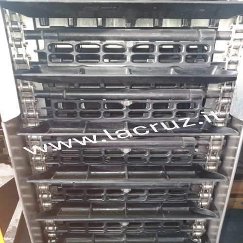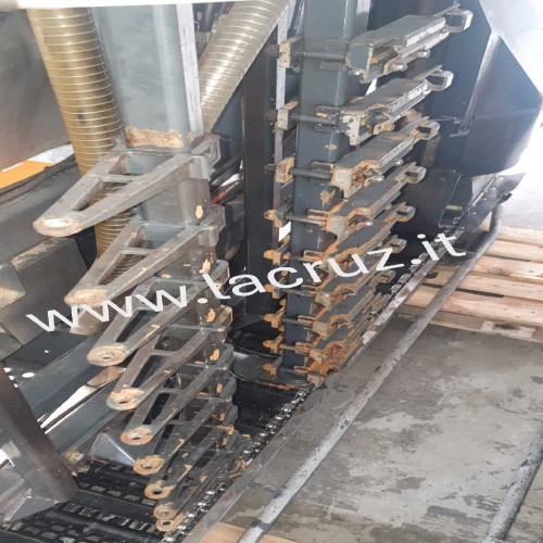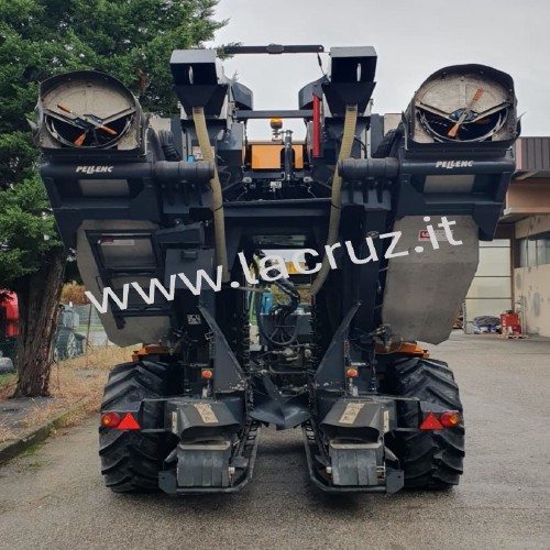 Macchina equipaggiata con sistema di pulizia Clean Master, sistema di scuotitura Smart System Evo con 9 scuotitori per lato, due aspiratori inferiori e due aspiratori superiori.